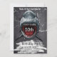 Invitación de cumpleaños de tiburones en huelga. Personalice su información.