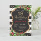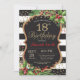 18. Invitación de cumpleaños para chica. Invitación a la fiesta de cumpleaños de los Navidades. Navidades Flor Floral. Purpurina negro, rojo y oro. Bandas blancas y negras. Digital Imprimible.