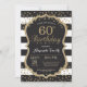 Invitación de cumpleaños número 60 para mujeres o hombres. Invitación a la fiesta de cumpleaños negro y oro. Purpurina de oro Confetti. Bandas blancas y negras. Digital Imprimible.