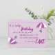 Invitación de cumpleaños morado con paraguas para un tema de fiesta de cumpleaños morado