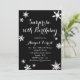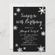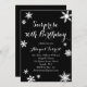 Una lluvia de copos de nieve decora esta divertida invitación de cumpleaños, con un clásico fondo negro. La edad se puede personalizar fácilmente con cualquier año. Si necesita más elementos de coordinación para su evento, simplemente contáctenos a prettyfancyinvites@gmail.com con su solicitud.