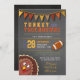Touchdowns y el Día de Acción de Gracias de Turquía - Game Day Invitation, presentan una linda Turquía mirando desde la esquina y un fútbol. Espacio para todos los detalles del evento. Este fiesta del portón trasero es perfecto para las vacaciones o cualquier evento de un día de juego.