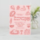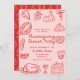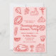 ¡Inviten a sus amigos y seres queridos a que se reúnan todos los años para dar las gracias o empiecen una nueva tradición familiar! Este diseño presenta una tipografía divertida, con letras a mano y doodles/garabatos dibujados a mano en el rosa y rojo de moda para las vigas más modernas, modernas y retro. Este producto es perfecto para reuniones familiares de día de agradecimiento, un divertido evento de amistad o incluso un fiesta de trabajo.