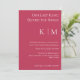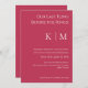 Prepárese para su gran día con sofisticación y estilo. La invitación "Nuestro último vuelo antes de los anillos" captura la esencia de tu historia de amor en un diseño Viva Magenta y blanco, con un diseño de monograma. Esta invitación desprende un encanto moderno, lo que da un tono perfecto a su cena de ensayo, un preludio a la gran celebración. Evocar la anticipación y la elegancia con nuestra invitación al ensayo Boda "Last Fling before the Rings" - el preludio perfecto para su feliz eternidad.