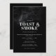 Crea el ambiente para una noche inolvidable con esta sofisticada invitación "Brindis y humo", perfecta para eventos de cigarros y licores, catas de whisky o reuniones exclusivas en un salón. Con un fondo negro elegante y acentos ahumados y tipografía refinada, esta tarjeta personalizable es ideal para veladas de lujo donde cigarros finos, licores añejos y buena compañía toman el centro del escenario.