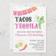 Invitación temática de Tacos y Tequila. Personaliza el texto editable y usa la invitación para cualquier evento. El diseño se puede utilizar para una despedida de soltera, anuncio de compromiso, fiesta del Cinco de Mayo, Fiesta y más. Cuenta con un cactus divertido, vaso de chupito de tequila, chile picante y más elementos de fiesta.