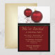 Una elegante invitación del Partido de los Navidades con una imagen de adornos navideños rojos. Es un PERSONALIZABLE permitirle cambiar la hora, fecha, lugar y la información de RSVP. Puedes cambiar fuentes de texto y colores o hacérmelo saber y puedo ayudarte a personalizarlo.