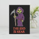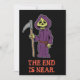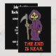 El Fin Está Cerca con una caricatura del segador. Una excelente invitación para la despedida de soltero de alguien que está a punto de casarse. ¡Otro más que muerde el polvo! Una divertida invitación para cualquier fiesta de solteros. Cuenta con una caricatura de la muerte.