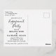 Esta elegante y moderna postal del Relieve metalizado de oro tropical "Engagement Party" es una manera fácil de invitar a amigos y familiares para celebrar su compromiso. "Partido de compromiso" junto con los nombres, fecha y ubicación de la pareja aparecen en el frente en el color de Relieve metalizado de su elección. El texto está resaltado por un marco estropeado. Las hojas tropicales, el follaje y los helechos alcanzan su pico por detrás del marco sobre un fondo negro. Las salpicaduras de Relieve metalizado dorado le dan un toque sofisticado de luminosidad al diseño. La parte trasera de la postal tiene los detalles de la fiesta de compromiso en negro.