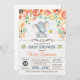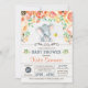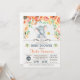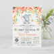 El acogedor Baby Shower Invitation presenta un adorable elefante acuático rodeado de exuberantes flores naranjas de otoño.