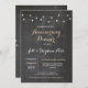 Cambie el texto para que se ajuste a su Fiesta de aniversario. Esta tiza rústica y las lámparas de cuerda invitan a un ambiente romántico y elegante. Impresión trasera incluida