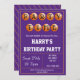 Invitación de fiesta con temática de baloncesto, editable para que pueda cambiar el saludo, nombre, fecha/hora, lugar y detalles RSVP a rayas, disponibles en otros colores.