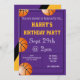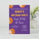 Invitación de fiesta con temática de baloncesto, editable para que pueda cambiar el saludo, nombre, fecha/hora, lugar y detalles RSVP a rayas, disponibles en otros colores.