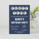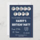 Invitación al partido con temática de béisbol, editable para que pueda cambiar el saludo, nombre, fecha/hora, lugar y detalles del RSVP a rayas, disponibles en otros colores.