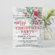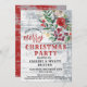 Navidades de estilo rústico invitan a una fiesta con bayas, flores y follaje en un granero de madera clara y afligida con un ambiente rústico de estilo rústico occidental o de granja. La parte trasera de la invitación incluye una madera de granero rojo angustiada que coincide con la tipografía roja en la parte delantera de la tarjeta. Estilo único y terrenal para una fiesta de invitados. Consulte la colección completa de productos con este diseño en: https://www.zazzle.com/collections/rustic_christmas_barn_wood_and_holly_berries-119642245345600858