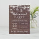 Invitación rústica de fiesta de retiro con luces de cuerda en un fondo de madera de granero, y una combinación de escritura y tipografía de rostro abierto . Perfecto para la celebración de la jubilación de hombres o mujeres. Para una mayor personalización, haga clic en el botón "Personalizar it" y utilice nuestra sencilla herramienta de diseño para modificar esta plantilla.