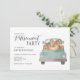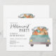 Invitación a la fiesta de retiro otoño con una camioneta acuarela llena de calabazas, en colores de otoño de color marrón y azul naranja. Hemos agregado la conocida frase usada al final de cada concierto de Elvis, pero agregó su nombre: "David ha dejado el edificio".