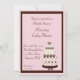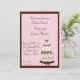 Invitación a la moda para la ducha de novias con torta de color rosa y marrón sobre fondo rayado rosado y borde marrón. Invitaciones con sobres y acabados de papel elegidos.