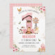 CUMPLEAÑOS DE GRANJA (PINK) - Esta adorable huella de nacimiento de animales de granja de corral, la invitación de cumpleaños rosada de primer cumpleaños es totalmente editable, se puede imprimir y enviar por correo o la prueba de cumpleaños se puede compartir por correo electrónico y medios sociales. Esta invitación a la fiesta de cumpleaños de la granja rosada muestra como telón de fondo una vaca, un cerdo, una oveja, un gallo, un polluelo bebé y un caballo con un gran número "1", un granero rosado y un gingham rosa. También se resaltan otras obras de arte de estilo rancho rodeadas de una huella de vaca neutra. Está incluido en la parte trasera de gingham rosa. Esta invitación de cumpleaños con temática de granja está segura de completar cualquier fiesta de cumpleaños de Barnyard, ¡y es fácil de editar para otros años de cumpleaños! Al usar el software Zazzle fácil de usar (no es necesario descargar) en su navegador, simplemente compra y personaliza todo en el mismo lugar. ¡Es tan fácil como eso!