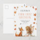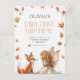 Invitación al Primer Cumpleaños de Hada de Otoño con un Zorro y una Pixie con alas y hojas de otoño