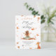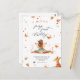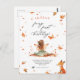 Invitación al primer cumpleaños de Hada de Otoño con un Zorro y una Pixie con alas y hojas de otoño