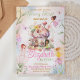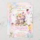 Invite a todo el mundo a su primera fiesta de cumpleaños del bosque de hadas con una plantilla de invitación de hada pastel. Esta invitación al cumpleaños del hada pastel consta de cuatro hadas diferentes, con su casa de campo con vegetación y flores en un moderno diseño de estilo pastel.