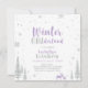 Celebra un día especial para tu pequeño con esta moderna Invitación de Cumpleaños 1er Invierno Onederland. Este diseño presenta gráficos de ciervos y copos de nieve con un tema de colores purpura y plateado con brillo.