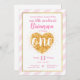 Este hermoso, divertido y moderno diseño dorado y rosa es perfecto para la fiesta del primer cumpleaños de tu pequeña dulzura.