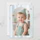 ¡Celebra el primer año de tu pequeña con esta adorable invitación de cumpleaños con temática de granja! La parte delantera cuenta con una encantadora vaca acuarela en un gorra fiesta con confetti dorado, ideal para tomar una copa en el jardín. En la parte posterior, la foto de su hijo está enmarcada por tiras suaves azules y blancas con acentos cardíacos al estilo purpurina, lo que le da un toque personal y lúdico. Este diseño de dos caras hace que sea fácil mostrar la personalidad de su bebé mientras mantiene los detalles de su fiesta en el centro. Personaliza todo el texto y sube tu foto en minutos usando las herramientas de edición de Zazzle. Imprimido con material de primera calidad, ¡es el perfecto inicio de una celebración de lo más veloz!