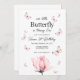 Invitación al primer cumpleaños de mariposa rosa