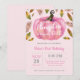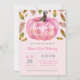 Invitación al primer cumpleaños de calabaza. Rosa y gris. Hojas de calabaza de acuarela. Invitación de cumpleaños de niña. 1º 2º 3º 4º 5º 6º 7º 8º 9º 10º, cualquier edad. Para una personalización adicional, haga clic en el botón "Personalízalo" y use nuestra herramienta de diseño para modificar esta plantilla.
