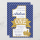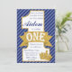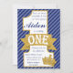 Invitación al primer cumpleaños de Prince con sobres de colores: Royal Blue y Gold Sparkle ● © Puggy Prints. Todos Los Derechos Reservados.
