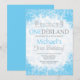 Invitación al primer cumpleaños de Winter Onederland Boy. Copo de nieve blanco y azul. Primer cumpleaños. Invitación al 1er cumpleaños del niño. Fondo blanco. Para una mayor personalización, haga clic en el botón "Personalizar" y use nuestra herramienta de diseño para modificar esta plantilla.