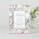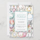 ¡Únete a nosotros mientras caemos por el agujero de conejo en un mundo de encantamiento y asombro! Nuestra pequeña está convirtiendo ONEmaravillosas, y cordialmente estás invitada a una mágica celebración en honor del primer viaje de [Nombre del Niño] a Onederland. Sigue al Conejo Blanco hasta un fiesta de té como ningún otro, donde aguardan aventuras más curiosas y curiosas. Una acuarela de lo más llamativa invita a la diversión. Rosa en la parte posterior de la invitación con quequitos. Invitación a acuarela.