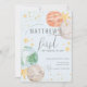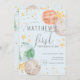 Adorable invitación al cumpleaños del espacio con planetas pastel, luna, estrellas y falsos acentos de oro. Perfecto para el fiesta de la galaxia en el espacio exterior de un niño.
