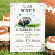 ¡Nuestro novato se está volviendo uno! Celebra el gran día de tu bebé con esta invitación editable de fútbol de primer cumpleaños. Con una acuarela de fútbol y una frase lúdica "Nuestro pequeño novato se está volviendo uno", esta invitación temática deportiva es perfecta para un novato del año fiesta, cumpleaños de fútbol o celebración del primer cumpleaños de un niño.