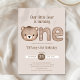 Celebra el primer cumpleaños de tu pequeña con esta adorable invitación con temática de oso. Con su rostro de osito de peluche dibujado a mano, sus acogedores tonos marrones y su lúgubre inscripción "ONE", este diseño es perfecto para una temática neutra, boscosa o rústica fiesta. Personalice el nombre, la fecha y los detalles del fiesta de su hijo. Una elección dulce e intemporal para los niños, chicas o celebraciones con neutralidad de género.