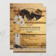 Plantilla del programa de invitación para escapadas de fin de semana de Hen o soltera con un tema rústico de caballo y campo, con dos caballos, una bota de vaquero y herraduras con flores y encaje sobre un fondo de madera templada.