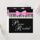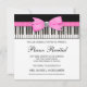 Plantilla de invitación para eventos musicales y de recital de piano con teclas de piano elegantes de color rosa, negro y blanco. Este diseño funciona bien para eventos de recital pequeños y grandes, formales y de corbata negra, invitación a la sinfónica, orquesta, banda o cualquier otro evento de recital musical o recaudación de fondos. Agregue sus detalles en la parte delantera y trasera simplemente eligiendo el botón "¡Personalízalo!" para comenzar a agregar los detalles de su evento, estilo de fuente, tamaño y color de fuente, y redacción. Tenga en cuenta que todos los diseños de invitaciones que encontrará en Zazzle son gráficos impresos sin joyas, lazos, partes o piezas elevadas, en relieve o agregadas. com