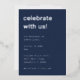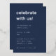 Invitación simple de Relieve metalizado de Boda azul de la Marina, por favor, personalice el frente de la invitación con los nombres de la pareja, la fecha y hora del boda y la ubicación del boda (u otra redacción de su elección), utilizando la plantilla de personalización en línea antes de realizar el pedido. Este diseño de invitación presenta un bonito texto de Relieve metalizado metálico en la parte delantera, en un diseño minimalista sencillo y elegante. El fondo de la parte delantera de la tarjeta es azul marino; la parte trasera también es azul marino. El diseño es rápido y fácil de personalizar y se puede usar para un boda u otro tipo de evento de celebración planificada como aniversario, cumpleaños o reunión familiar, personalizándolo como se desee.