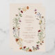 Invitación al Relieve metalizado Boda Boho Floral Rosa Gold. Esta elegante y elegante invitación a una boda de Relieve metalizado oro en rosa real presenta hermosas flores silvestres de acuarela pintadas a mano dispuestas como una hermosa corona y un elegante guión de caligrafía, perfecto para bodas de primavera, verano, otoño e invierno. Buscar elementos coincidentes en la colección de Bodas Boho Wildflower.
