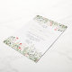 Esta colección cuenta con un borde de flores naturales de color agua elegantes y vegetación en tonos verdes, verde azulados, naranjas y amarillos.