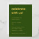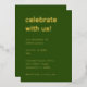 Invitación simple de Relieve metalizado de Boda verde forestal, por favor, personalice la parte delantera de la invitación con los nombres de la pareja, la fecha y hora del boda y la ubicación del boda (u otra redacción de su elección), utilizando la plantilla de personalización en línea antes de realizar el pedido. Este diseño de invitación presenta un bonito texto de Relieve metalizado metálico en la parte delantera, en un diseño minimalista sencillo y elegante. El fondo de la parte delantera de la tarjeta es de color "verde bosque"; la parte trasera de la tarjeta también es "verde bosque". El diseño es rápido y fácil de personalizar y se puede usar para un boda u otro tipo de evento de celebración planificada como aniversario, cumpleaños o reunión familiar, personalizándolo como se desee.