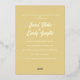 Añada un toque moderno y elegante a sus invitaciones de boda con esta suave invitación oficial de boda de oro. Relieve metalizado real en el frente con un diseño de hojas. Personalizar el texto para que se ajuste a sus necesidades. Utilice la plantilla para personalizar.