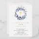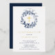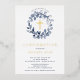 Hermosas invitaciones de confirmación de Relieve metalizado dorado con una suave corona de hojas azules y cruz sobre fondo blanco. Invierta nuestra invitación para ver una coordinación de nuevo para un toque especial. Visite nuestra tienda para ver toda nuestra colección de hojas.