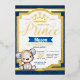 Invitación de cumpleaños del Relieve metalizado del Príncipe de Teddy Real - ¡Él es el rey de tus corazones! Dale a tu pequeño príncipe de oso de peluche todo el trato real. Presentado con impresionantes colores dorados y azules reales, parte de nuestra atractiva gama de invitaciones de Relieve metalizado. Esta elegante invitación es perfecta para el primer año de cumpleaños de un niño y elevará la celebración de su pequeño a alturas reales!