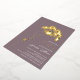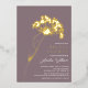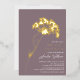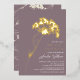 Hermosa invitación a la ducha de novia con un verdadero tallo de flores de Relieve metalizado sobre un fondo malva. La parte trasera cuenta con una elegante espalda floral de coordinación para un toque especial.