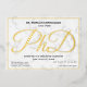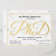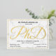 Una invitación para una fiesta de graduación de doctorado con Relieve metalizado dorado, texto negro y fondo de mármol. Simplemente agrega tu información, agrega esta invitación a tu carrito y celebra este gran logro. Diseño de vacaciones de la invitación al Relieve metalizado de graduación de PhD blanco de oro de mármol | ©Melissa Patton - Diseñador