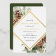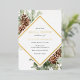 ¡Inviten a sus seres queridos a una ducha de novias para celebrar a la novia! Cuenta con un ilustracion acuático de vegetación invernal y pinecones. Personalizar con su redacción. Haga clic en "Personalizar más adelante" para editar el estilo de letra, el tamaño y el color si lo desea. Elija entre opciones de Relieve metalizado de oro plateado, oro y rosa.