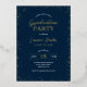 Moda elegante invitación a fiesta de graduación con un borde de confeti de Relieve metalizado dorado y elegante mezcla de fuentes modernas. Utilice las herramientas de diseño para elegir cualquier color de fondo, personalizar el texto, cambiar fuentes y colores y crear su propio diseño único.